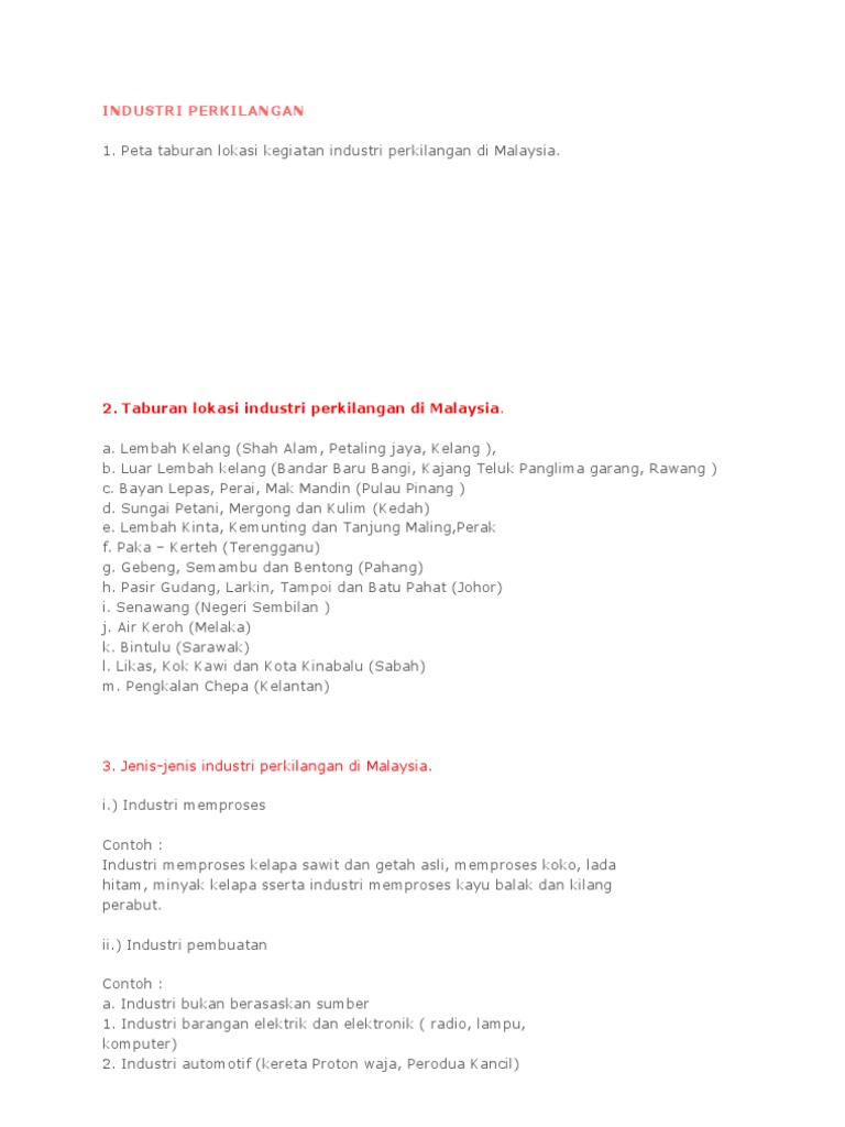 Pencinta Geografi Peta Kegiatan Perindustrian Di Malaysia