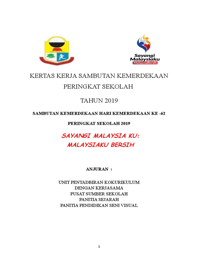 Kertas Kerja Sambutan Kemerdekaan Peringkat Sekolah Tahun 2019