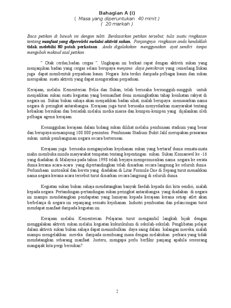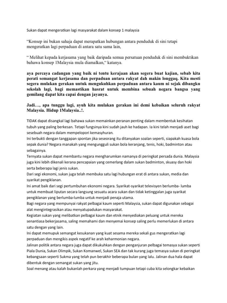 Marcapada sukan sering menjadi keutamaan bagi menghiasi dada akhbar dan bukan saja melibatkan kejohanan tempatan malahan di peringkat global. Kebaikan sukan kepada individu masyarakat dan negara. Kepentingan sukan kepada diri dan negara pendahuluan contoh kata charles swindoll orang yang berjaya bukanlah orang yang memendam semangatnya kerana takut gagal bukan juga orang yang tidak pernah gagal tetapi ialah orang yang masih tetap maju ke depan sungguhpun menempuh kegagalan. 16 08 2019 by karangannet sukan merupakan satu aktiviti riadah yang paling sesuai dilakukan oleh pelbagai lapisan masyarakat negara ini.