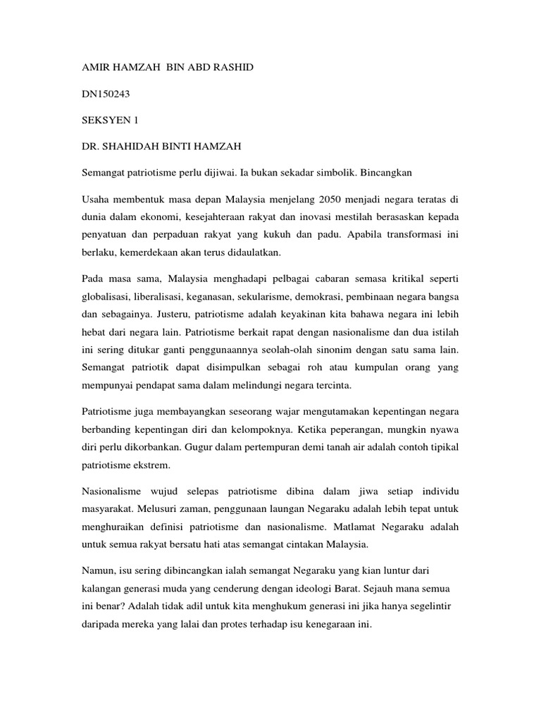 Isu Tentang Semangat Patriotik Semakin Luntur Dalam Kalangan Masyarakat Sering Diperkataka1 Docx Course Hero