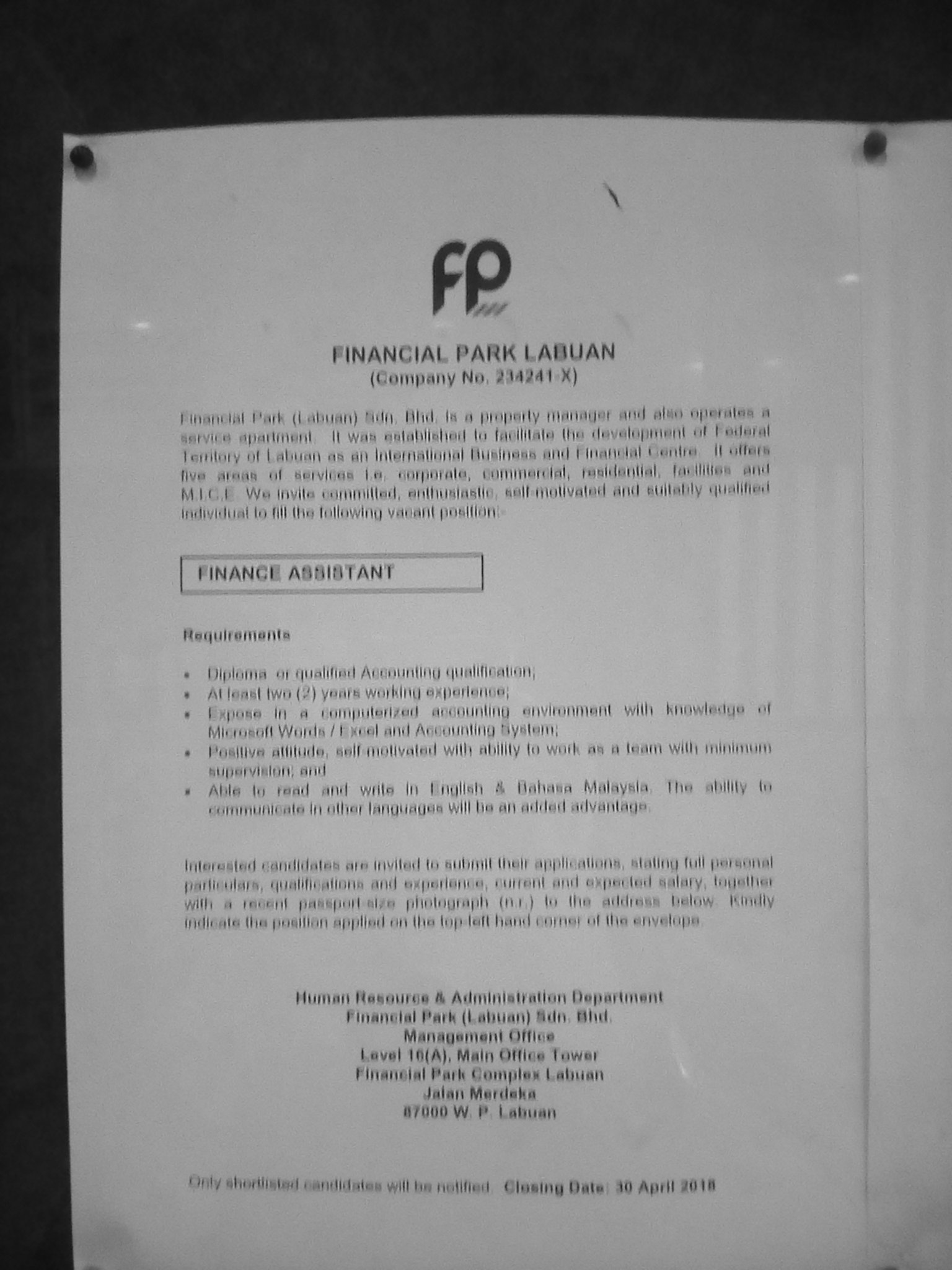 Wp Labuan Malaysia Sur Twitter Iklan Kerja Kosong Di Ujana Kewangan 30 April 2018