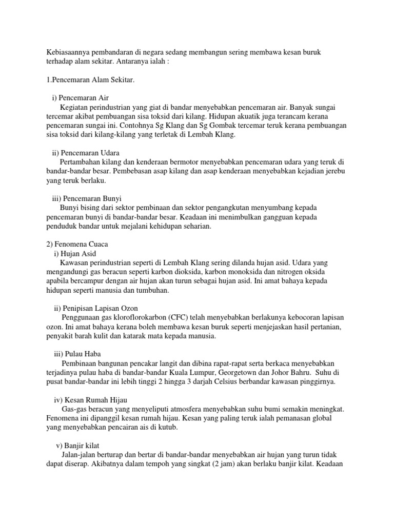 Kebiasaannya Pembandaran Di Negara Sedang Membangun Sering Membawa Kesan Buruk Terhadap Alam Sekitar