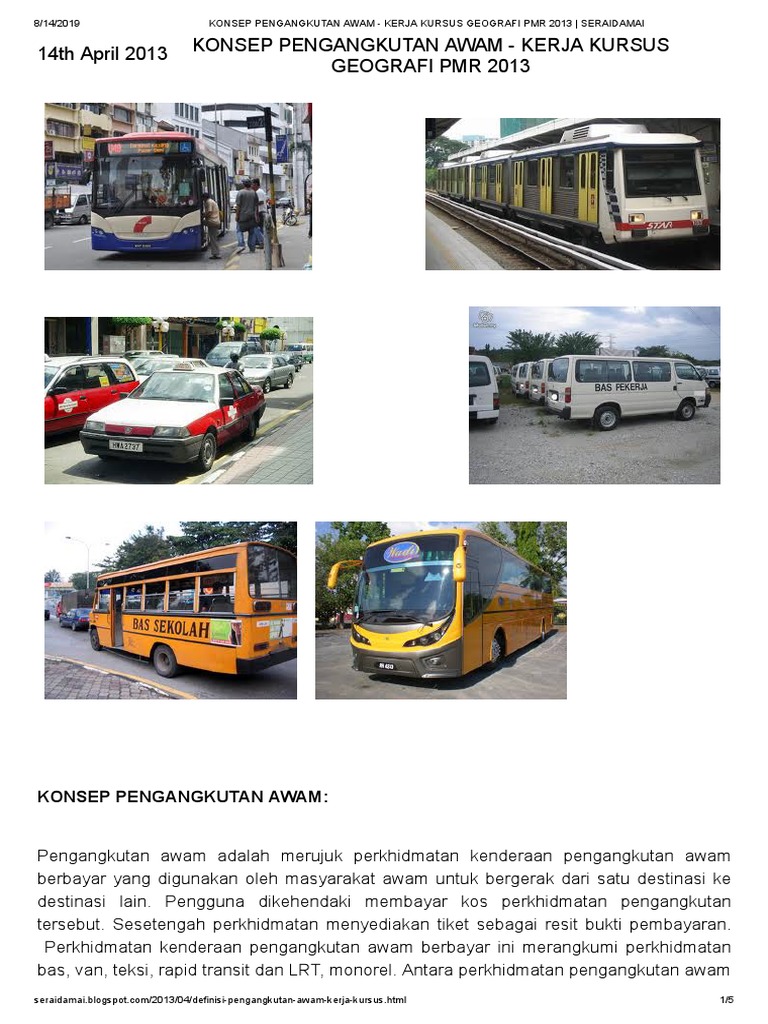Konsep Pengangkutan Awam Kerja Kursus Geografi Pmr 2013 Seraidamai Pdf