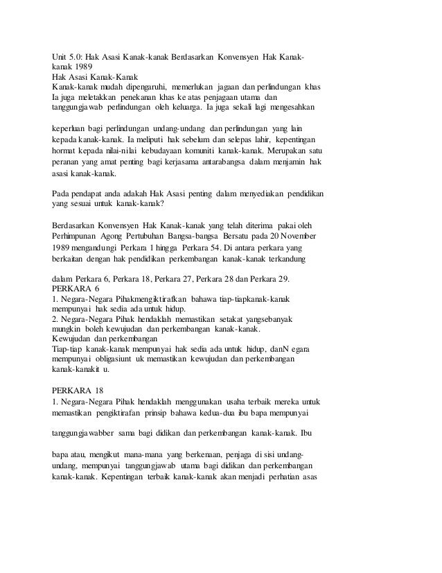 Memberikan perlindungan kepada kanak kanak dari segi pengabaian penderaan jaminan kanak kanak akan mendapat haknya eksploitasi tujuan konvensyen 3. Hiv aids coordination and school health unit. Hak asasi kanak kanak konvensyen mengenai hak kanak kanak konvensyen mengenai hak kanak kanak crc telah dibentangkan dalam perhimpunan pertubuhan bangsa bangsa bersatu pbb pada 20 november 1989. Untuk tinggal di dalam.
