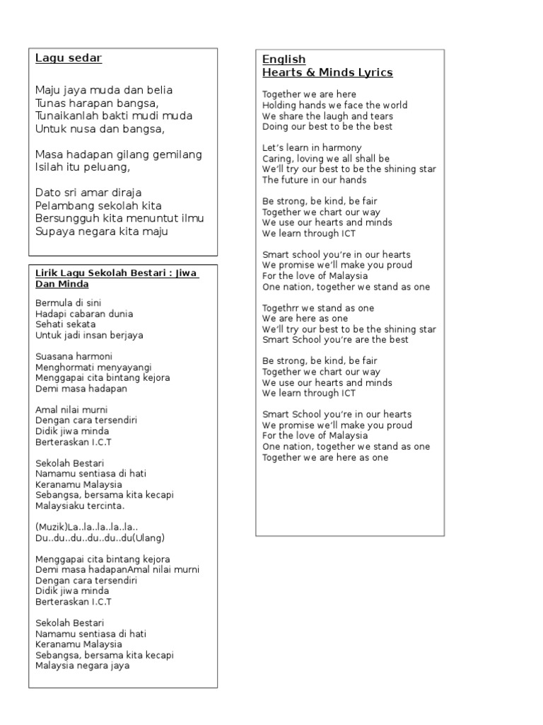 Lagu Sekolah Lirik Lagu Keranamu Malaysia