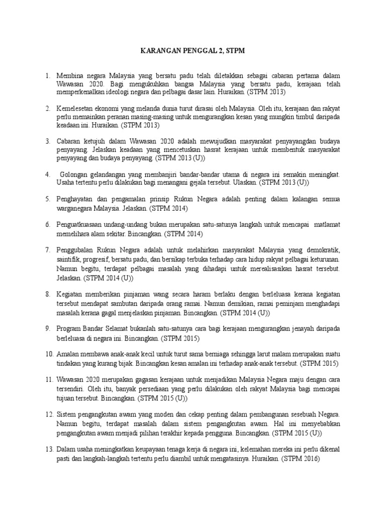 Esei Pengajian Am Pdf Koleksi Esei Peperiksaan Percubaan Pengajian Am 1 Stpm 2017 Trial Smk Gajah Berang Sem 1 Stpm 2017 20 Banyak Masalah Yang Course Hero