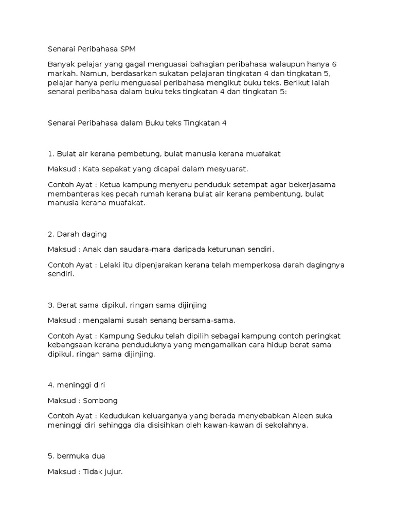 Senarai Peribahasa Dalam Buku Teks Tingkatan 4 Dan 5