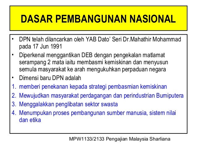 Pengajian Malaysia Dasar Pembangunan Negara New 010713 065433