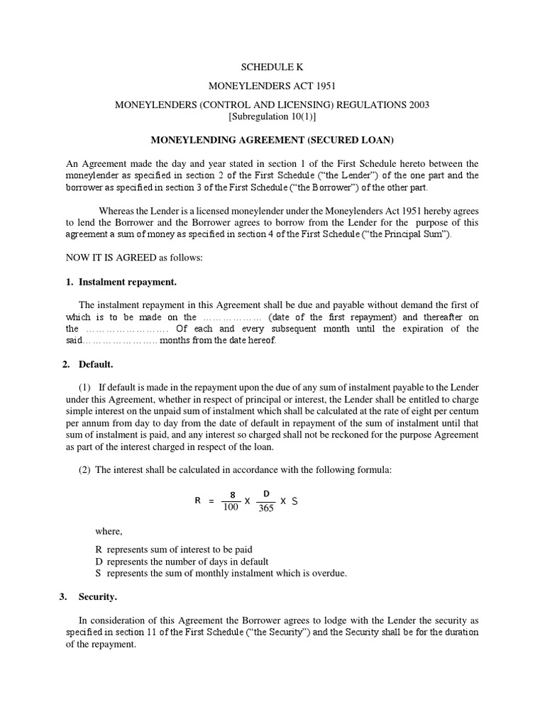 Moneylenders Act 1951 Act 400 Regulations Joshua Legal Art Gallery