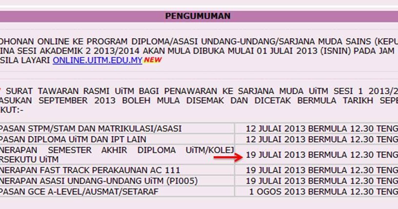 Pengumuman Penting Semakan Keputusan Bahagian Pengambilan Pelajar Uitm Facebook