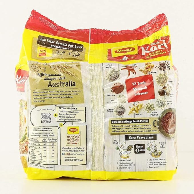 Amazon Com Maggi Nestle Malaysia 2 Minute Instant Curry Flavour Masala Noodles 5 Packs X 79g Kari Spicy Pedas Mee Chili Soup Grocery Gourmet Food