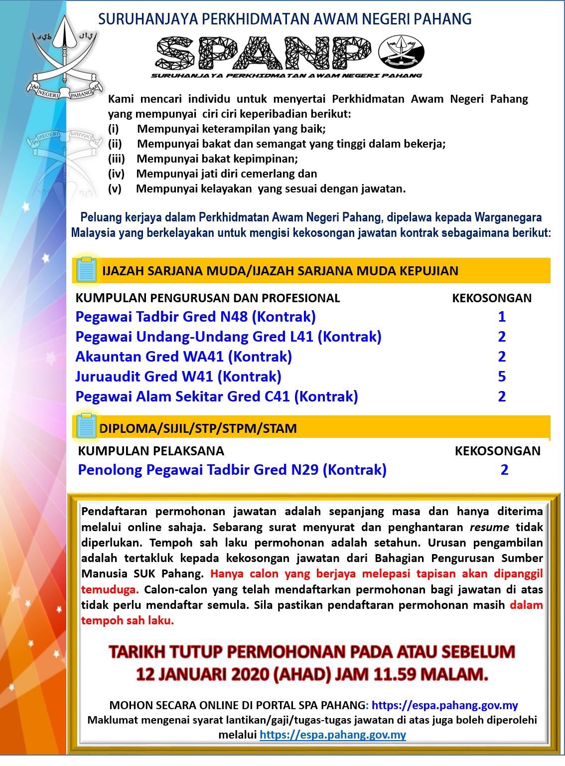 Jawatan Kosong Di Suruhanjaya Perkhidmatan Awam Negeri Pahang Spanp Tarikh Tutup 12 Januari 2020 Jawatan Kosong Kerajaan 2020 Terkini